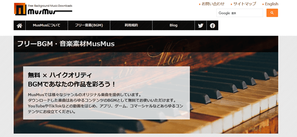 MusMus(ムズムズ)は、管理人のwatson氏が制作・公開している、非常に高品質でオリジナリティ溢れる楽曲が揃った日本のフリーBGMサイトです。