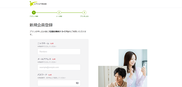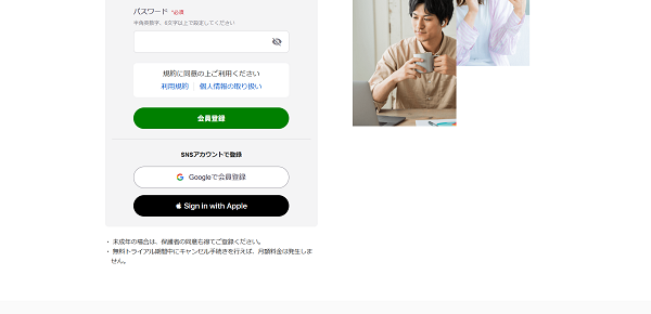 会員登録はPCやスマホから簡単に登録できますが、無料体験を希望する場合は本申し込みの前に行ってください。