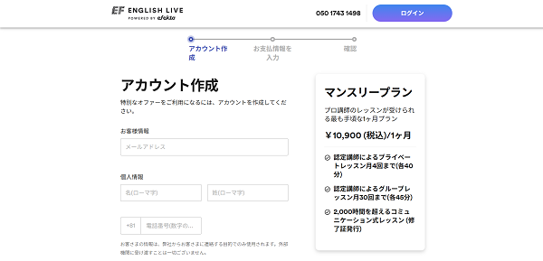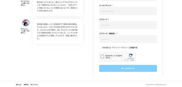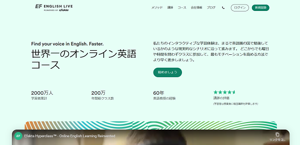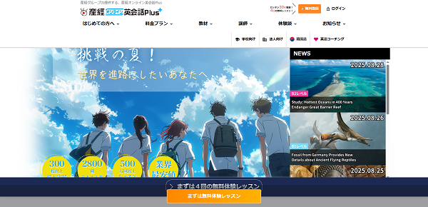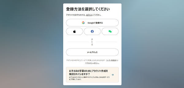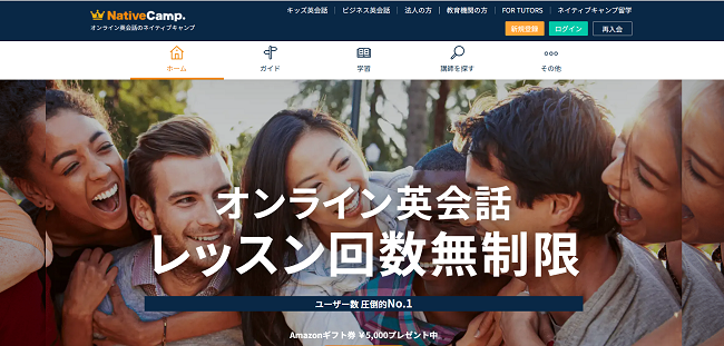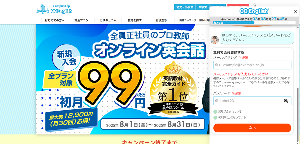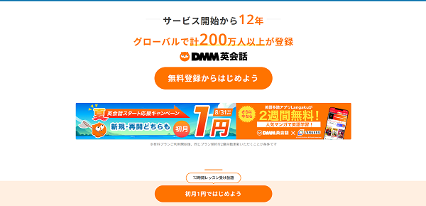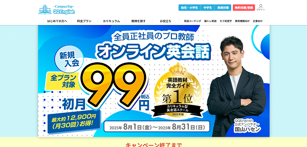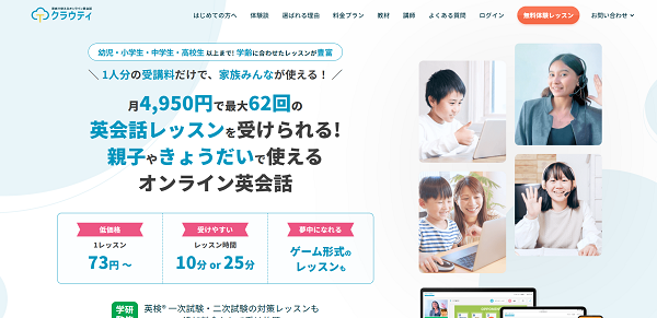 | 料金プラン | プレミアムプラン 6,480円(税込) ライトプラン 5,450円(税込) ファミリープラン 1,980円(税込) オプション:ネイティブ受け放題 9,800円(税込) |