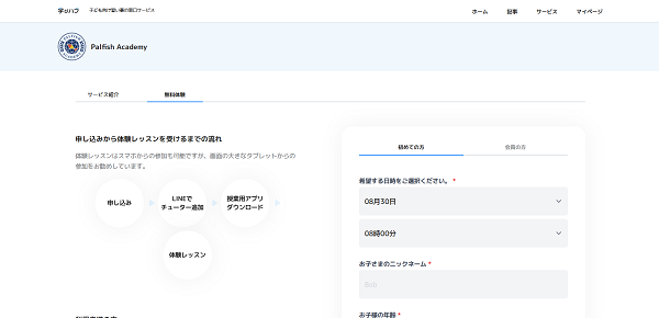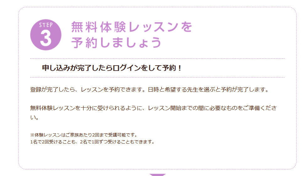 会員登録が完了すれば、サイトからレッスン日時や講師が選択できるようになります。